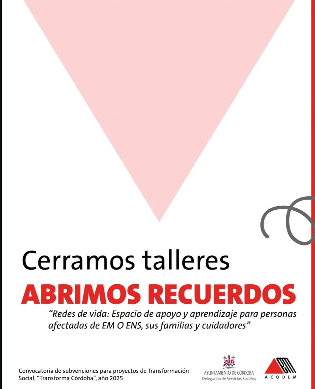 por su apoyo y colaboración, gracias a los cuales hemos podido llevar a cabo estos talleres del proyecto «Redes de vida: Espacio de apoyo y aprendizaje para personas afectadas de EM o ENS, sus familias y cuidadores» desde septiembre hasta diciembre. de 2025.